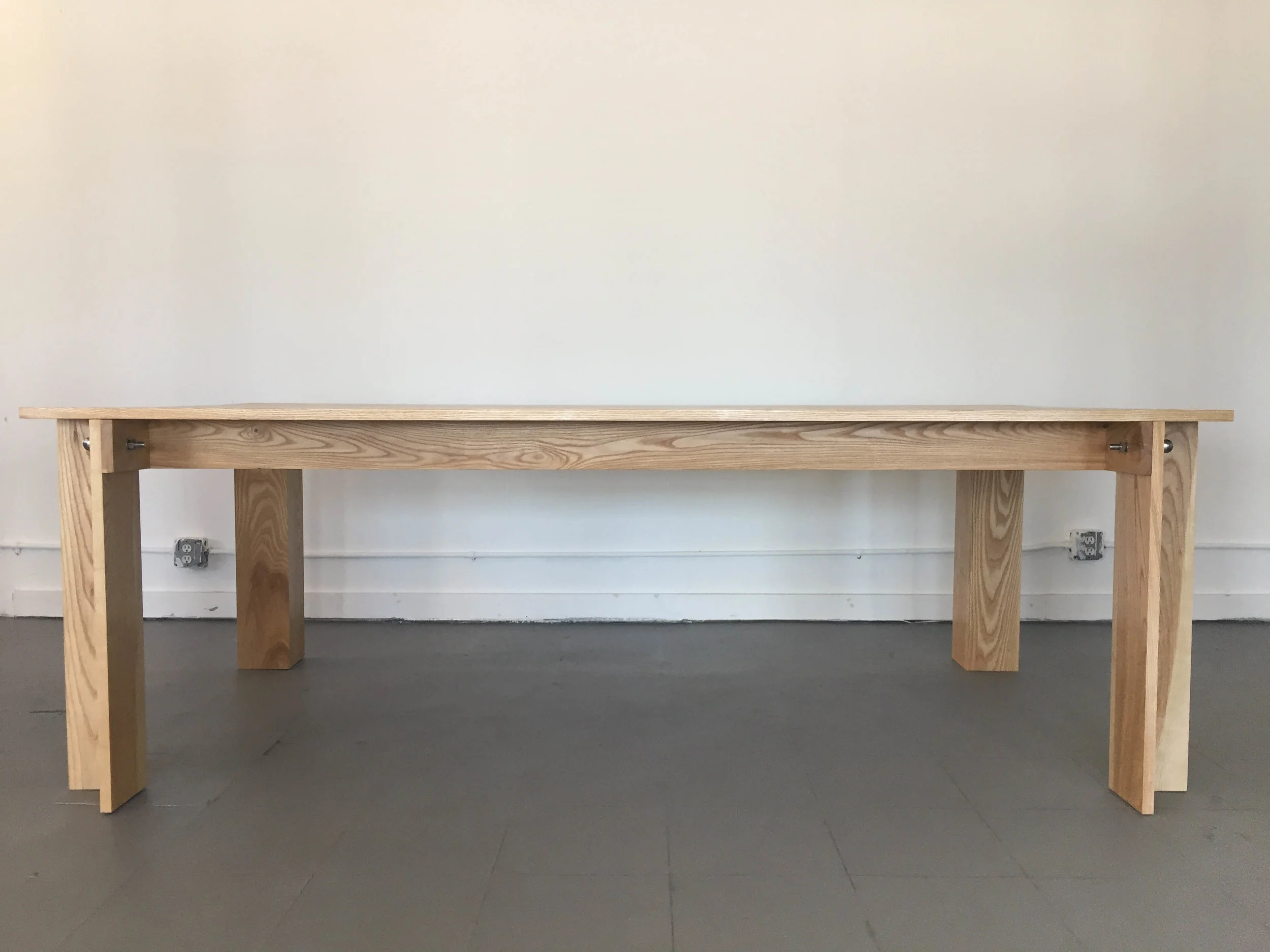 Using the same basic principles as the Depot Desk and done in hardwood, this simple design has an entirely different presence. Other than changing the dimensions and the material used, the principles remain the same. Rendered in oiled ash with stainless hardware, this version was commissioned for the offices of a small advertising agency in Greenpoint, Brooklyn.